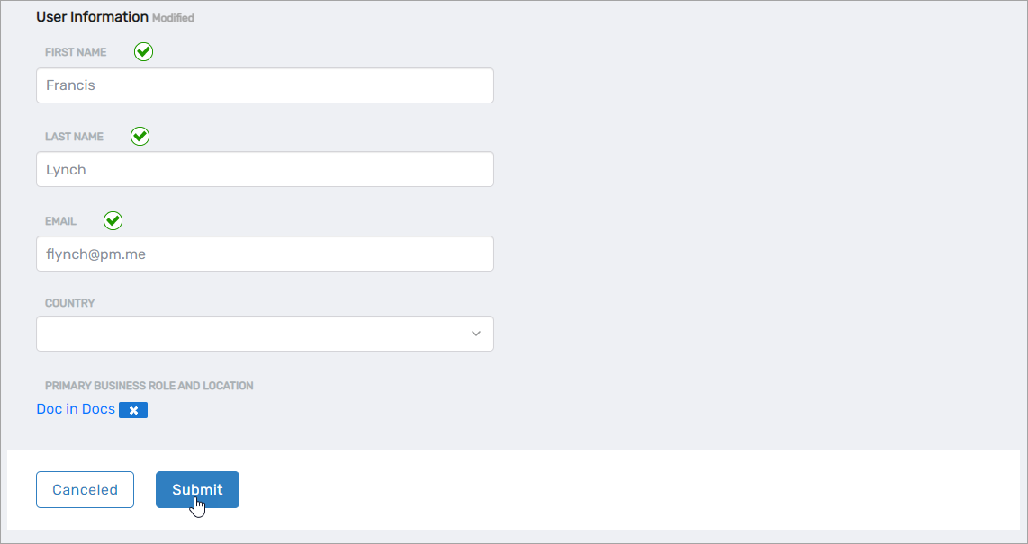 - Primary Business Role and Location – Click the Select a Role and Location link and then search for and select the Business role and location for the person you are inviting. All people must have a Business Role and Location.