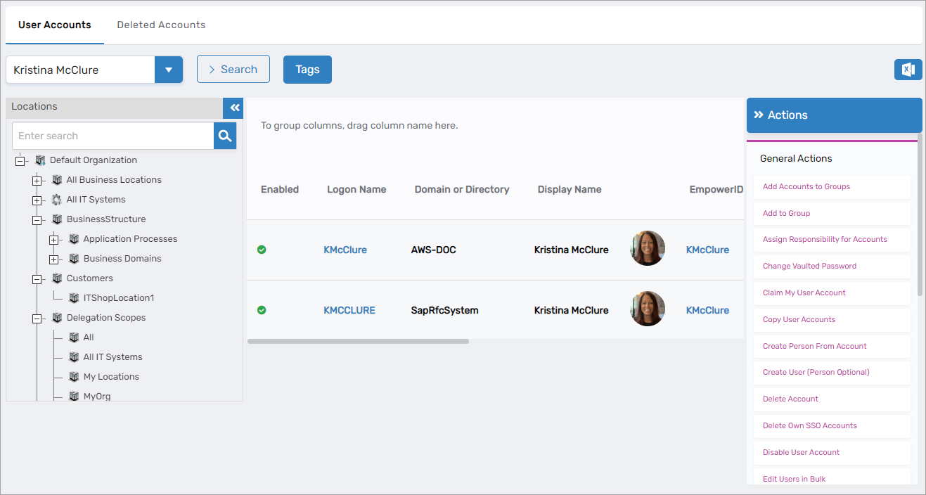 Figure 2: Using the Locations tree to return all user accounts in the selected location