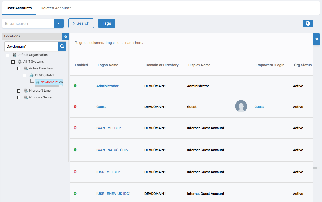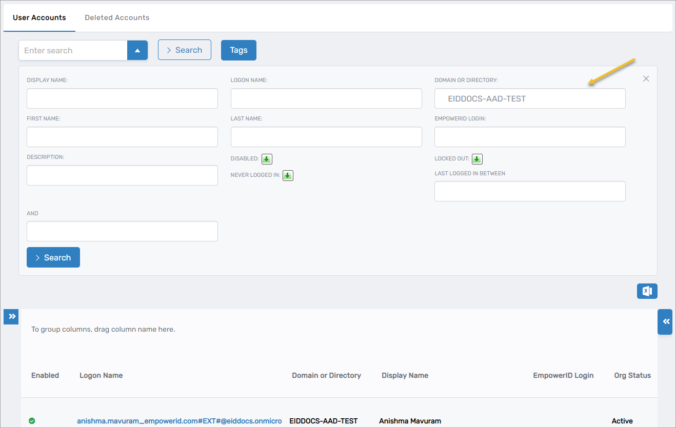 Domain or Directory | The originating domain or directory of the user account | Returns all user accounts with the specified domain |