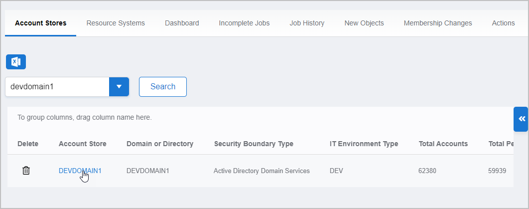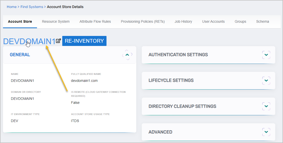 Select the Account Stores tab and then search for the account store you want to configure for automated directory cleanup.