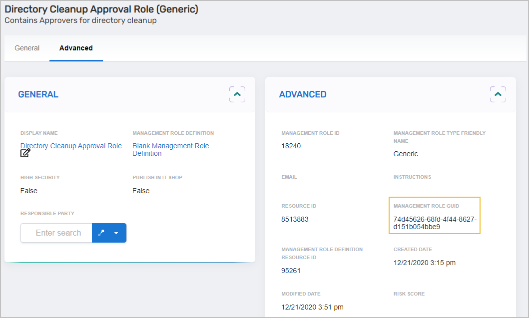 Locate and copy the Management Role GUID. You will need this information when configuring the resource system for directory cleanup.