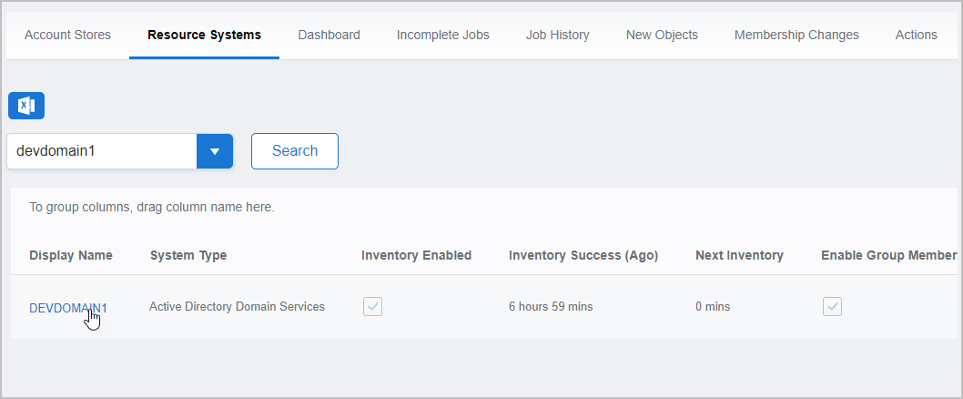 Select the Resource Systems tab and then search for the resource system of the account store you want to configure for automated directory cleanup.