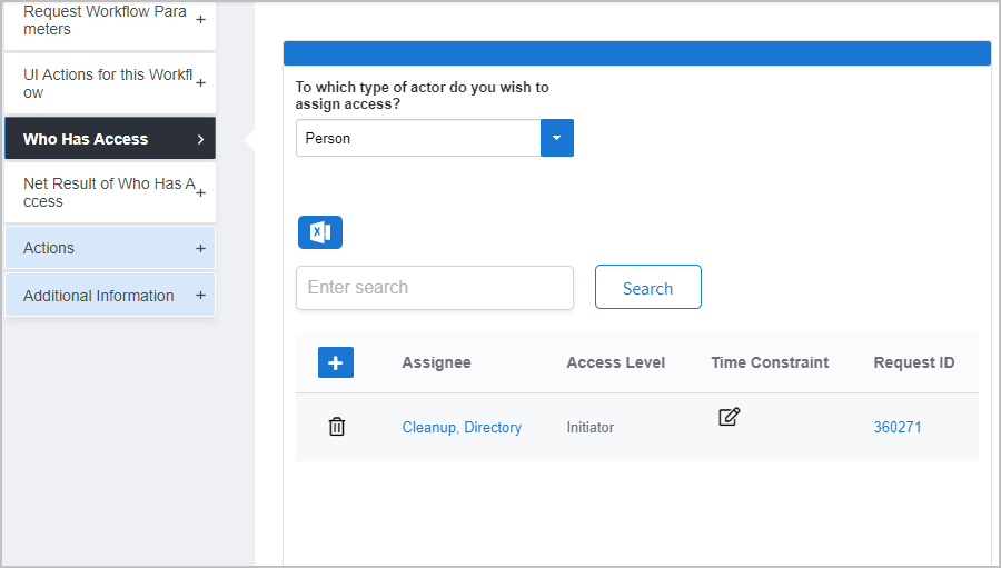 - Select Person from the To which type of actor do you wish to assign access? drop-down.