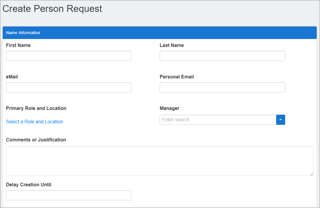 Click the Create Person Simple Mode action. This opens the Create Person Request form.