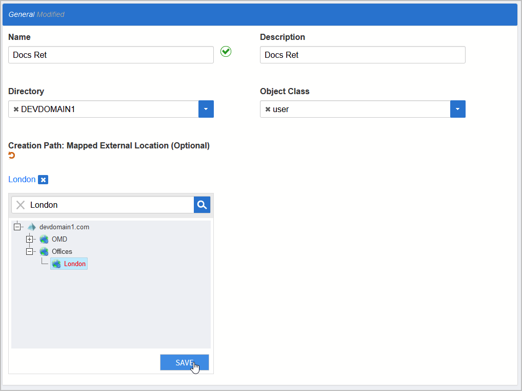 Move – Marks any previous resources assigned to the user that match the RET as RET-managed resources and moves the user object to the OU specified by the RET policy.