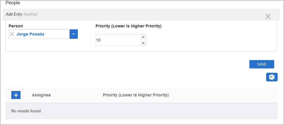 In the Add Entry pane that appears, search for and select the appropriate assignee.