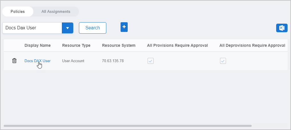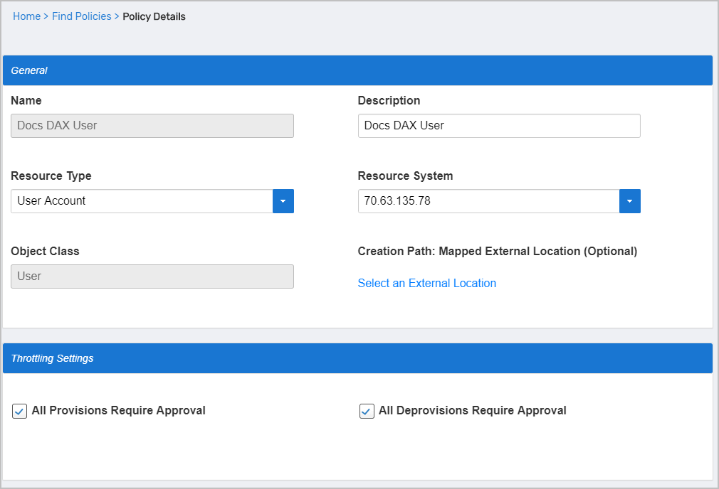 If you are creating this provisioning policy for DAX users with an Active Directory user account type, please proceed to How to add configuration parameters; if this provisioning policy is for DAX users with the Claims user account type, simply click the main Save button.