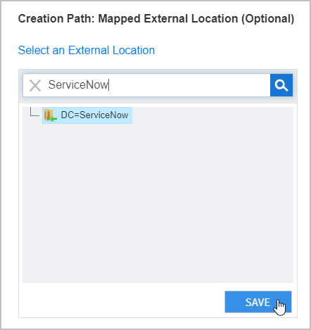 - Creation Path – Click the Select an External Location link and then search for and select your ServiceNow location.