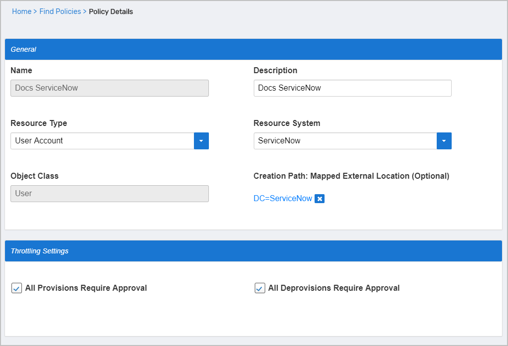 ServiceNow Account Provisioning Policies