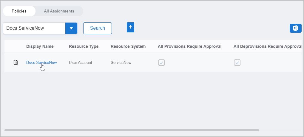 - Search for the policy you just created and then click the Display Name link for it.