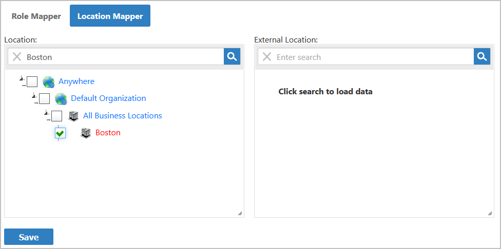 From the Location pane of the Location Mapper tab, enter the name of the EmpowerID location you want to map and press ENTER to load the location.