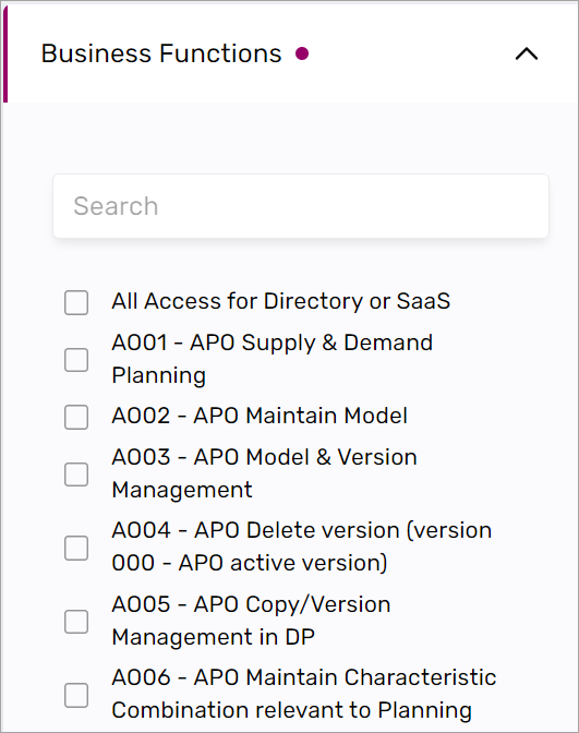 | Business Functions | Filter available groups and roles by Business Functions. This filter appears only when shopping for groups, Business Roles, and Management Roles.