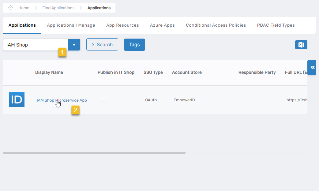 Each environment has a unique URL that points to its version of the IAM Shop application. To set the URL, do the following: