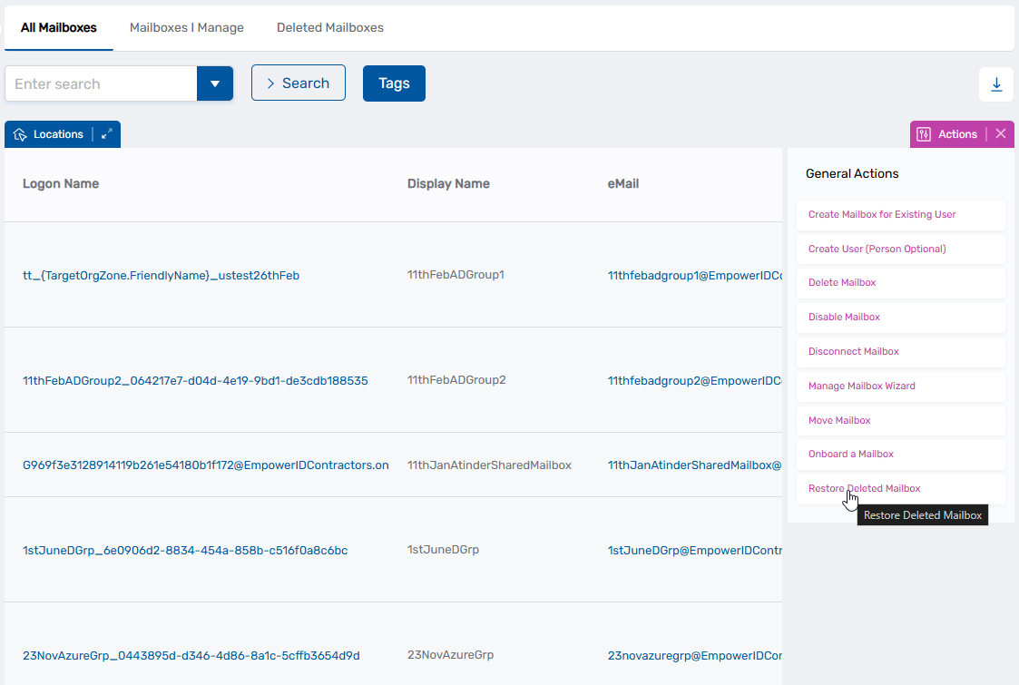 This topic demonstrates how to restore a mailbox that was previously deleted in EmpowerID.