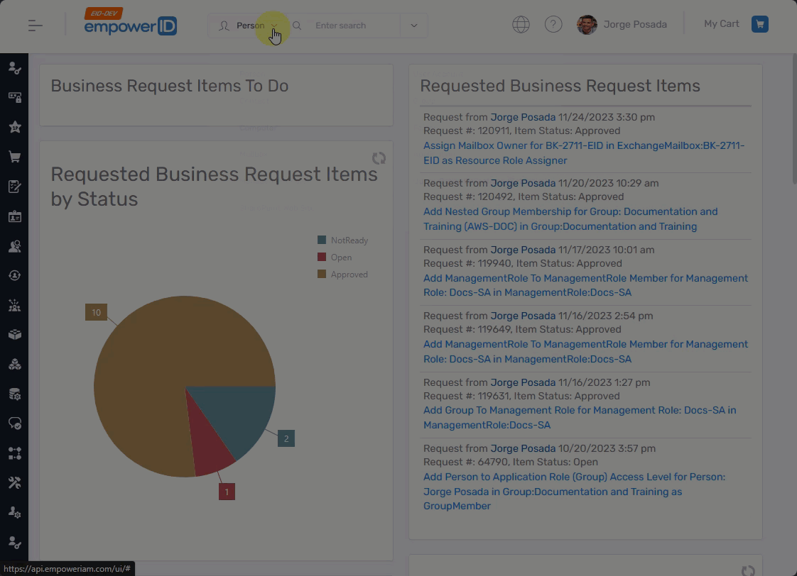 - Use the Global Search to open the View page for Resource Admin, as shown below.