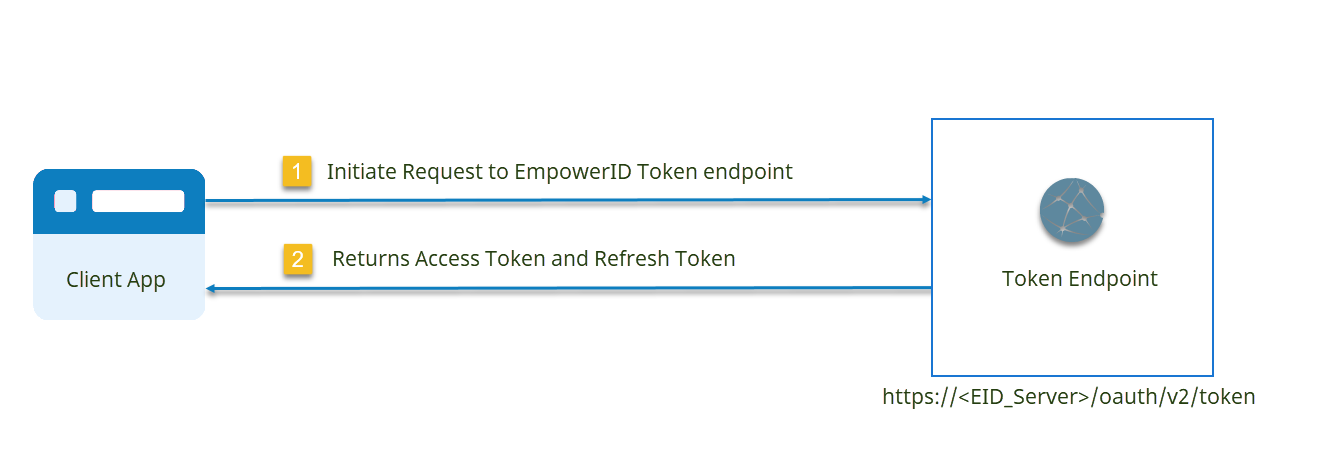 - The client application initiates the flow by sending credentials directly to the EmpowerID token endpoint with the required parameters. These parameters are discussed below.