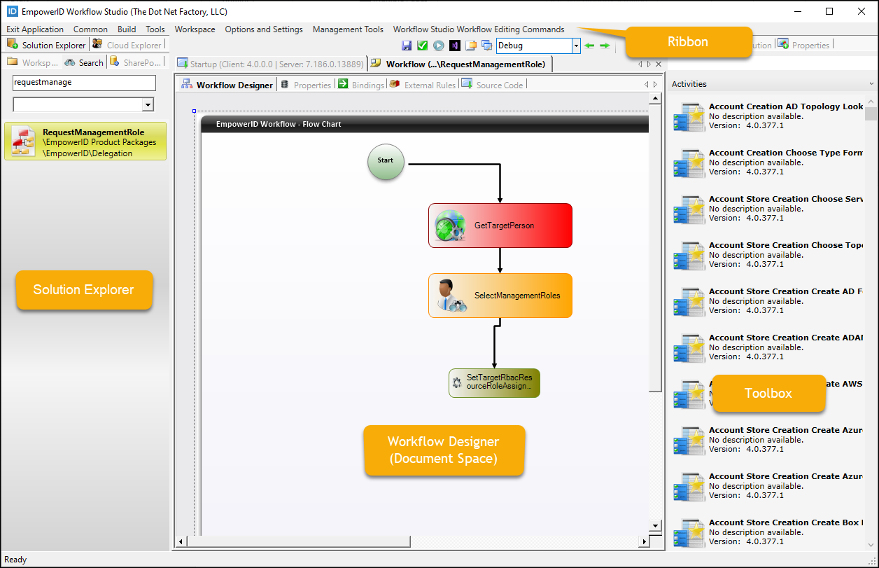 Workflow Studio is EmpowerID's integrated development environment (IDE) designed specifically for developers to create, modify, and extend workflows. With Workflow Studio, you gain access to a comprehensive set of tools that streamline the design and customization of workflows to fit the unique needs of your organization.