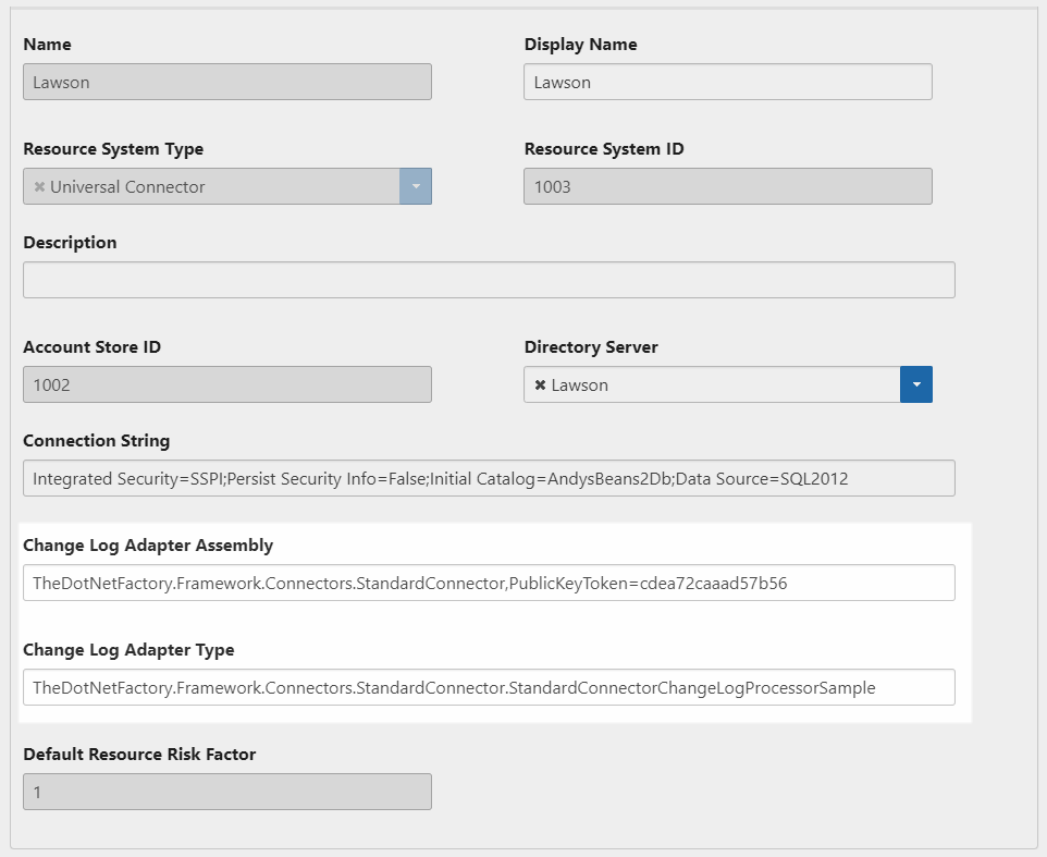 Once you’ve developed your real-time or batch-processing module, register the assembly in EmpowerID by updating the ChangeLogAdapterAssembly and ChangeLogAdapterType fields for your organization’s Universal Connector resource system.