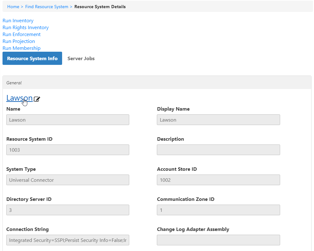 - Click the Resource Systems tab and locate your Universal Connector resource system.