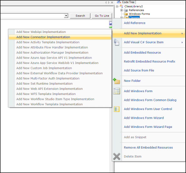 Custom Connector: To name a Custom Connector, use a descriptive name to represent the connector and append the word "Connector" at the end. A connector would be a class within the class library. For example, in CustomConnector, "Custom" describes the type of connector, with the word "Connector" following it.